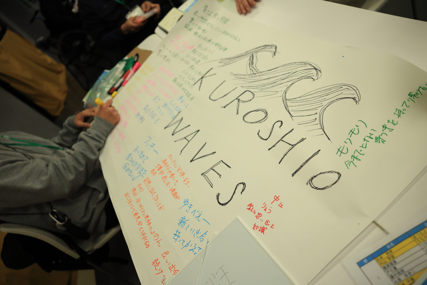 「KUROSHIO Waves」という班の名前の周りにメンバーが気付いたことを書いている